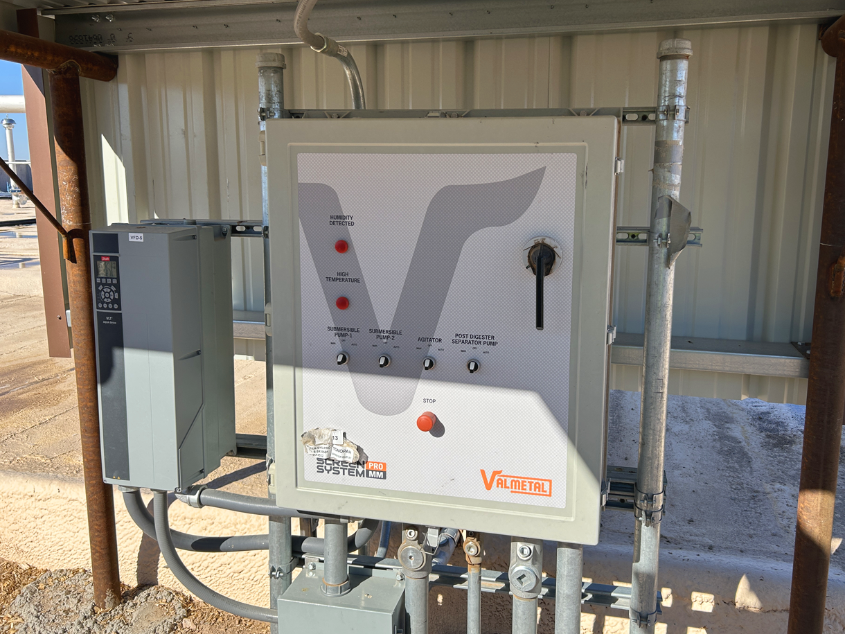 L’installation comprend un digesteur anaérobie (DVO) d’une capacité d’environ 611 520 pi³ (≈ 4,57 millions de gallons), qui transforme le fumier en énergie renouvelable. Le procédé s’appuie sur d'importantes infrastructures de gestion du fumier et de traitement des eaux usées avec litière de sable, incluant des bassins d’épaississement et d’égalisation, de deux séparateurs à tamis incliné et courbé de 8' x 12' équipés de systèmes de nettoyage à pression automatiques, ainsi que de plusieurs pompes et agitateurs.